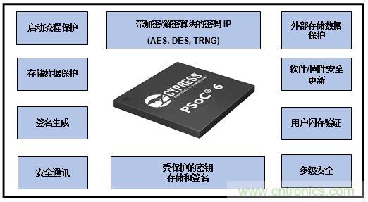 與固件相比,安全硬件還具有提供更快性能和更低功耗的優(yōu)勢(shì)。比如,賽普拉斯 PSoC 6 BLE MCU 中的專用加密模塊可加速加密功能。此外,該模塊提供了真隨機(jī)數(shù)生成功能、對(duì)稱密鑰加密和解密、哈希、消息認(rèn)證、隨機(jī)數(shù)生成(偽隨機(jī)和真隨機(jī))、循環(huán)冗余校驗(yàn)以及諸如啟用/禁用、中斷設(shè)置和標(biāo)記等實(shí)用功能。該 MCU 組件還配備了安全啟動(dòng)功能。該功能使用 ROM 程序在閃存中驗(yàn)證用戶數(shù)據(jù)。安全啟動(dòng)是一項(xiàng)包含加密技術(shù)的過(guò)程,它使物聯(lián)網(wǎng)設(shè)備開始執(zhí)行已認(rèn)證的可信軟件。因此,系統(tǒng)可以從一個(gè)已知、可信的狀態(tài)開啟。