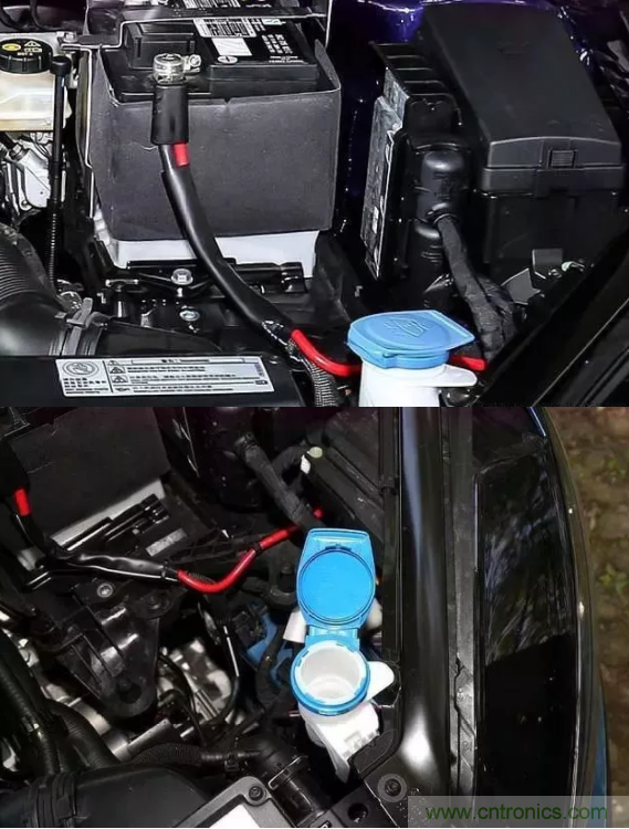 但這不是我們關注的重點。高爾夫的蓄電池布置在整車左側靠近駕駛室的地方,機艙電器盒緊挨著蓄電池進行布置。這種布置方式,對于降低線束重量和線束成本非常有利??梢詷O大的縮短蓄電池到機艙保險盒,機艙保險盒到駕駛室保險盒的粗導線的長度。