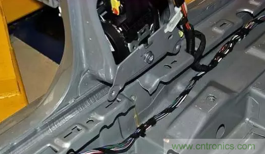 高爾夫的頂棚線束包扎設計方案為膠帶黏粘到頂棚上進行固定,如下圖所示。