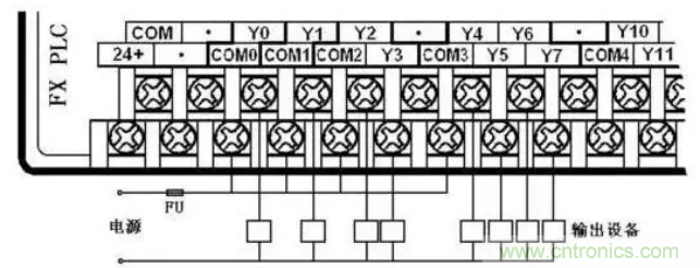5、PLC與輸出設(shè)備開關(guān)的連接