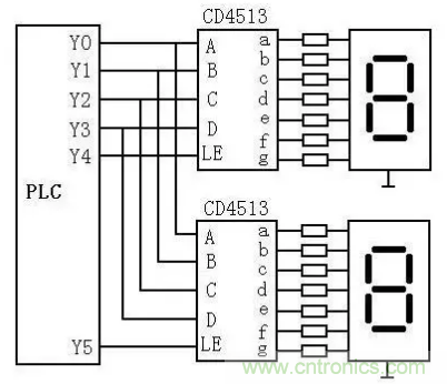 PLC可直接用開關(guān)量輸出與七段LED顯示器的連接,但如果PLC控制的是多位LED七段顯示器,所需的輸出點是很多的。