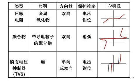 表1:常見(jiàn)ESD保護(hù)元件分類(lèi)