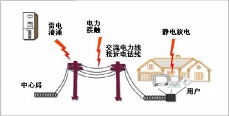 - 電力故障: 由于電信線路和電力線可能物理接近,電話線上能夠感應交流電壓。這種情況可用50 Hz或60 Hz(可長達15分鐘)波形來定義。