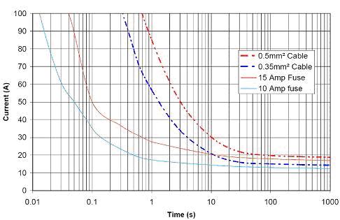 熔斷器的工作原則是一個(gè)簡(jiǎn)單的I2R與時(shí)間的關(guān)系。電流越大,熔斷或開(kāi)路時(shí)間越短。熔斷器的功耗與通過(guò)熔斷器的電流的平方成正比。當(dāng)功耗過(guò)高時(shí),熔斷器熔斷。這個(gè)特性同樣適用于受熔斷器保護(hù)的線束。當(dāng)熔斷器的“熔斷”特性與所保護(hù)的線束相似,只是處理電流能力略低時(shí),熔斷器是一個(gè)理想的選擇。