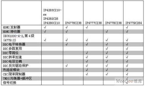 下表列出了恩智浦的主要HDMI接口調節和ESD保護設備的重要功能。
