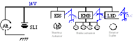 下表總結了現代汽車的汽車電氣/電子系統的主要子系統(和負載):