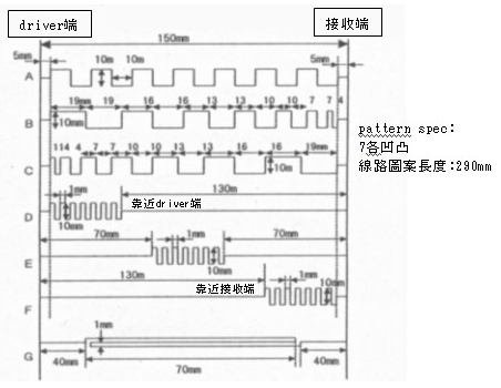 (1)。編號G的線路圖案除外,其它線路圖案的阻值Zo 并無明顯差異。