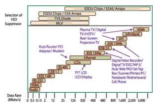 圖1 不同數(shù)據速率對應的靜電放電抑制技術