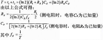 單片機(jī)測得振蕩輸出的頻率,計算后即可得到電阻和電容的值。不同量程對應(yīng)不同的電路參數(shù),利用開關(guān)可方便地選擇對應(yīng)不同量程的對應(yīng)電路。