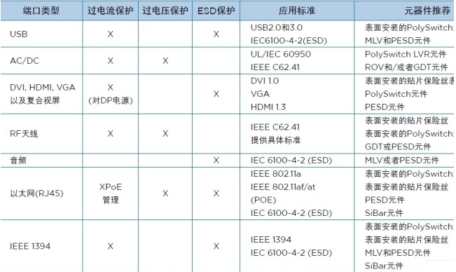 對(duì)LCD電視的界面的故障保護(hù)有明確地要求,包括有涉及各種故障保護(hù)需求的具體的標(biāo)準(zhǔn)。圖片7總結(jié)了這些標(biāo)準(zhǔn)以及對(duì)每一種端口類型所建議的電路保護(hù)設(shè)備。