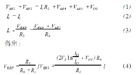 從式(4)中可以看出2 ln ( IS3 / IS2 ) VT相對于ln( IS3 / IS2 )VT受失調電壓VOS的影響明顯減少,即級連二極管的采用使基準電壓受運放失調影響減少。