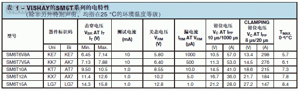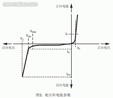 在特定的峰值脈沖電流定額下,TVS上會出現鉗位電壓。TVS的擊穿電壓在非常小的電流下測得(例如1mA或10mA),它不同于應用條件下的實際雪崩電壓。因此,半導體制造商所標注的是在大電流下的典型或最大擊穿電壓。