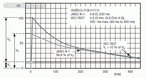 兩個熟知的試驗模擬了這個條件:針對14V動力總成的美國ISO-7637-2 Pulse 5和日本JASO A-1和針對27V動力總成的JASO D-1。在本節中,我們將回顧在14V動力總成中用于甩負荷的TVS應用。