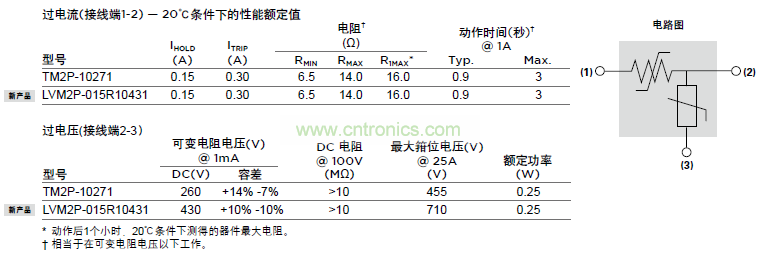 泰科電子(TE)2Pro器件是集成過電流和過壓保護(hù)的模塊,符合RoHS標(biāo)準(zhǔn)。在一個(gè)器件中集成PolySwitch PPTC(聚合物正溫度系數(shù)熱敏電阻)和金屬氧化物壓敏技術(shù),從而減少電路板空間需求和器件數(shù)。