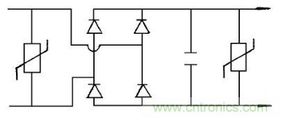 圖4中在開啟或關閉帶有感性, 容性的負載電路時, 直流波形出現開關尖脈沖, 壓敏電阻將吸收這種反電動勢, 有效地保護開關電路、變電壓。