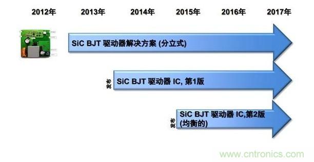 飛兆針對SiC BJT產(chǎn)品已經(jīng)有了一個(gè)完整的產(chǎn)品路線圖。現(xiàn)在飛兆SiC BJT解決方案驅(qū)動(dòng)部分還是分立式的,下一步我們首先開發(fā)SiC BJT驅(qū)動(dòng)IC。SiC BJT驅(qū)動(dòng)器和其他以往同類器件有很大的不同,由于通過電流很大需要特需驅(qū)動(dòng)IC,所以飛兆有必要開發(fā)出專屬IC,防止EMC干擾。” 藍(lán)建銅說。