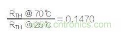 假設在25℃或室溫下,RTH為10,000Ω,那么,在70℃下,RTH為1,470Ω。