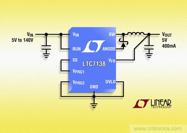 【導讀】近日,凌力爾特公司宣布推出 擁有140V 輸入的高效率降壓型轉換器 LTC7138,該器件提供高達 400mA 連續(xù)輸出電流,靜態(tài)電流僅為 12µA 的 140V、400mA 。LTC7138 在 4V 至 140V 輸入電壓范圍內工作,因此非十分適合電信、汽車、航空電子和工業(yè)等多種應用。