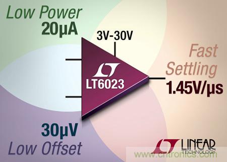 【導讀】2015 年 3 月 23 日,凌力爾特公司推出低功率運算放大器 LT6023,LT6023具有高精確度與高阻抗。LT6023具有 30µV 最大輸入失調電壓。卓越的擺率與功耗比使得電路能實現快速、干凈的輸出階躍響應。
