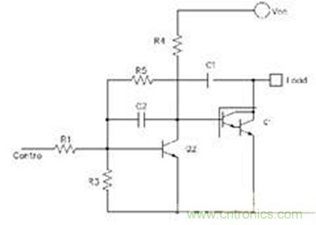 圖中R1作用是Q2的基極限流;R3作用是泄放掉關(guān)斷狀態(tài)時(shí)基極電荷,讓Q2在低電平時(shí)保持截止?fàn)顟B(tài);R4作用是Q2的集電極限流以及Q1的基極限流;電容C2是加速電容,加速Q(mào)2的開(kāi)關(guān)速度,降低Q2管耗,從而延長(zhǎng)Q2壽命;R5和C1是作為輸出反饋給Q2的基極,作用同樣為加速Q(mào)2的開(kāi)關(guān)速度,延長(zhǎng)Q2的壽命以及電路整體的性能,此為正反饋。