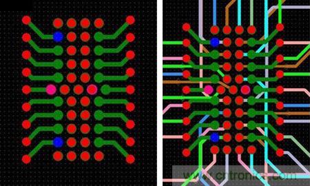 型BGA扇出法是分成4個象限,在BGA中間則留出一個較寬的通道,用于布設從內部出來的多條走線。分解來自BGA的信號并將它們連接到其它電路涉及到多個關鍵步驟。