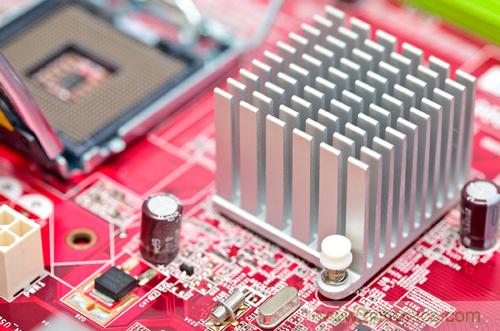 對于任何可能過熱的元器件,都應當研究能否通過使用散熱器來有效地降低元器件溫度。如果氣流方向主要與封裝的一側垂直,則板型(或擠壓)鰭片散熱器可能最合適。否則,應當考慮釘狀鰭片散熱器。