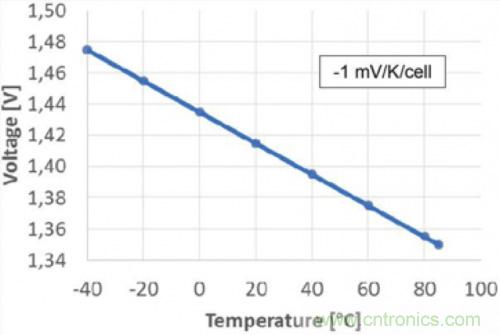這兩個效應導致每個電芯具有-1 mV / 1 °C的線性電壓相依性。