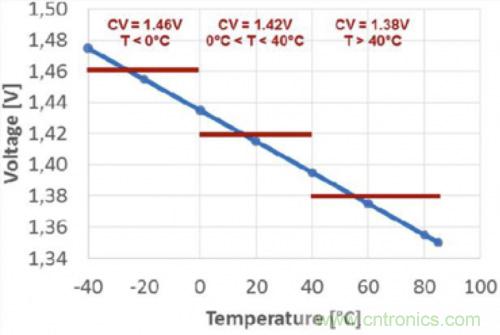 圖1.充電電壓是溫度的函數