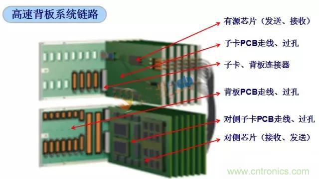 高速背板的設計除了關注背板PCBA設計要素以外,需要關注整個系統高速信號互連鏈路的設計,典型的高速信號鏈路參考下圖: