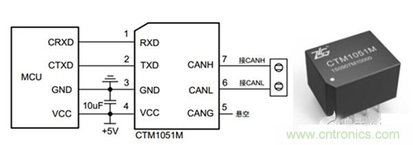 CAN的接口防護一般是在收發器外加隔離保護器件,如光耦、磁耦等。為接口設計方便,我們可以使用一體化的收發器模塊。相比于單個的收發器芯片,模塊化的產品環境適應性更強。圖2是超小體積、隔離型CAN收發模塊,這種模塊可以掛載到CAN總線上,擁有高達2500VDC隔離耐壓值。