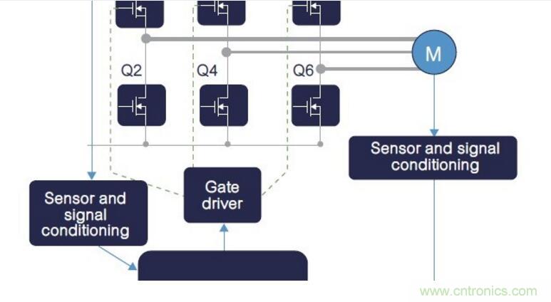 在電橋拓撲內,反向恢復過程從下橋臂開關(圖7中的Q2)續(xù)流結束時開始,到上橋臂開關(圖7中的Q1)開始導通時終止,且最終的恢復電流加到上橋臂電流內。連同上橋臂開關上的額外電流,下橋臂反向恢復過程與Vds≈0V到Vdc換向操作,可能會在下橋臂開關閘源電壓上產(chǎn)生雜散跳變電壓,因為下橋臂Ciss(輸入電容)是透過Crss(Miller電容)完成充電過程。