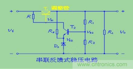 如把串聯(lián)穩(wěn)壓電路看作反饋放大器(輸入為VI,輸出為Vo),則這種電路屬于電壓串聯(lián)負(fù)反饋 。