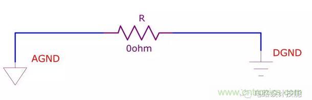 用于信號完整性的模擬地和數(shù)字地的單點連接 - 有人說0?跟沒有一樣,干嘛不直接連接上?想象一下如果你在電路原理圖里沒有這個0?的電阻,做PCB Layout的時候就可能忽略這個單點連接的原則,CAD軟件也會亂連在一起,達(dá)不到你單點連接的初衷。當(dāng)然單點連接的時候你也可以用磁珠,我個人的觀點其實連接點的位置選擇好的話,磁珠除了比電阻貴之外,沒有什么好處,實際的操作中你可以用比較小的封裝的0?電阻,比如0402、0201,焊接的時候直接用烙鐵將兩端搭接在一起就可以,連電阻也省了;