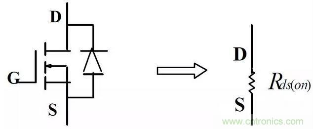 即內(nèi)部二極管的等效電路,可用一電壓降等效,此二極管為MOSFET 的體二極管,多數(shù)情況下,因其特性很差,要避免使用。