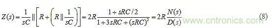 為簡單起見,假設圖8a的RC對完全相同。可以看出,無論我們怎樣選擇元件值,該電路的極點將始終為負實數。