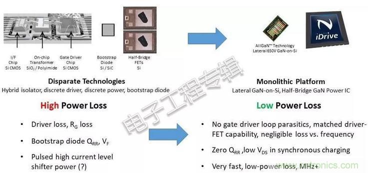 關(guān)于集成的另一個問題是ESD。標(biāo)準(zhǔn)硅MOSFET的ESD非常容易理解。PWMIC的ESD也是眾所周知的。而GaN器件是分立形式的,其ESD就不是那么容易理解。我們必須要小心,但如果你要設(shè)計功率IC,那么就要將ESD二極管放在上面。因此,這也成為通過集成使生活變得更為輕松的另一種方式,可以集成電平移位器,或半橋直通保護之類的東西。
