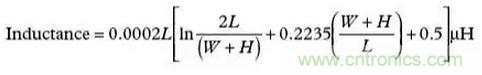 帶狀電感是另外一種需要考慮的寄生效應(yīng),它是由于印制線過長或缺乏接地平面引起的。式(2)示出了計算印制線電感(Inductance)的公式。參見圖6。