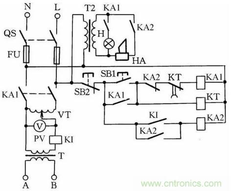 若被測物絕緣擊穿,電流即迅速增加,過電流繼電器KI動作,KA2得電動作并自鎖,KA1失電,KA1的常開觸點切斷主回路電源,蜂鳴器HA發(fā)出聲響,按下SB2后電路全部關斷。應用操作這種儀器時,要特別注意人身安全,工作通電時,高壓測試區(qū)禁止人靠近。