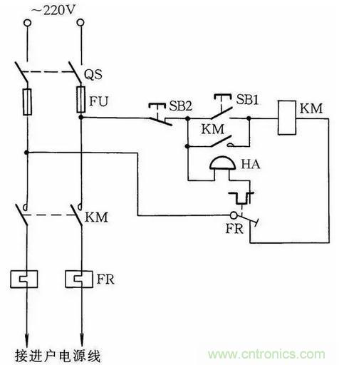 圖23所示線路可使甲乙兩地都能向總控制室發(fā)聯(lián)絡信號。當甲地向總控制室發(fā)信號時,按下按鈕SB1,控制室的電鈴告警。同理當乙地向總控制室發(fā)信號時按下SB2即可。甲乙兩地信號可用信號鈴聲的時間長短或次數(shù)區(qū)分。