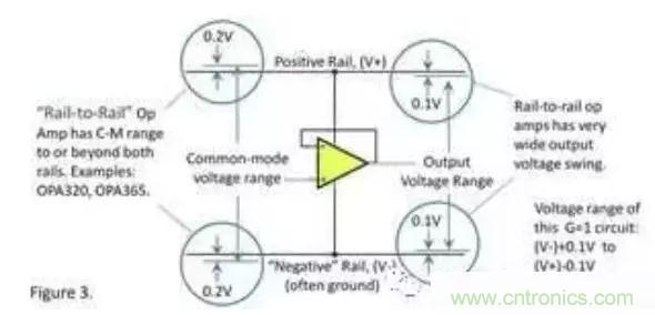 輸出電壓范圍“包含(幾乎達到)”供電電壓,即所謂軌至軌輸出。