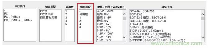 Digi-Key官網上,升壓控制器篩選列表參數中提供了不少參數選項以協助工程師選料,其中“輸出階段”便是其中之一。“輸出階段”即代表芯片可以有多少相輸出。