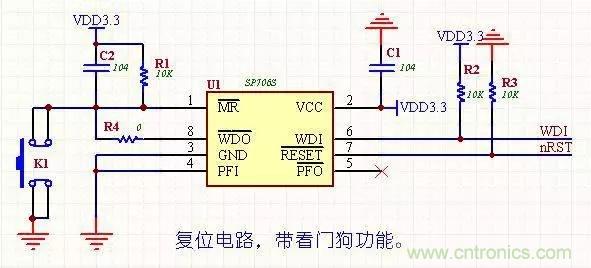 帶看門狗和手動復位,價格便宜(美信的貴很多),R4為調試用,調試完后焊接好R4。