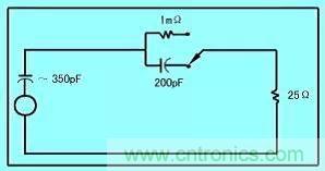 這些實驗數據可用其他方法來解釋。發射最小值(線電流為0的時候)是濾波器無偏置電流時表現出來的效果。峰值發射與最小發射的比率,即降級因子,用來衡量線電流偏移量對濾波器實際效果的影響。降級因子較大表明共模扼流圈磁芯完全沒有得到恰當的使用,較好的濾波器的“固有降級因子”差不多在2—4之間。它是由兩種現象產生的:第一,60Hz充電電流引起的電感減?。ㄈ缟纤觯坏诙瑯蚴秸髌鞯恼蚣胺聪驅ā9材0l射的等效電路由一個阻抗約為200PF的電壓源、二極管阻抗和LISN的共模阻抗組成,如圖2所示。當橋式整流器正向偏置時,在源阻抗、25和LISN共模阻抗之間會產生分壓現象。當橋整流器反向偏置時,在源阻抗、整流橋反偏電容、LISN之間產生分壓現象。當二極管整流橋反向偏置電容較小時,對共模濾除有一定效果。當整流橋正向偏置時則對共模濾除沒有影響。