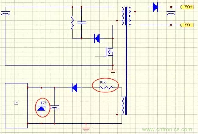 但是不要忘了,上面分析的這個(gè)還是比較好的情況來分析的,我們試想一下,你的變壓器Vcc繞組上的電壓不可能設(shè)計(jì)的那么準(zhǔn),比如在輸出空載時(shí)Vcc繞組是14V,如果主輸出功率比較大,Vcc可能上升都18V,20V甚至更高,另外Vcc電壓飄跟電源功率,跟變壓器繞制工藝也有很大關(guān)系,這些都是不好把控的,調(diào)試的需要限流電阻也不一定是10Ω,所以這個(gè)方案肯定是不行的。