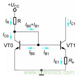 當Re0=Re1時,IC1仍然等于IR,但此電路的IR由式(2-4)約定,比式(2-2)的IR小,一般用于前置放大器的輸入級。