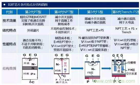 1985年前后美國(guó)GE成功試制工業(yè)樣品(可惜后來(lái)放棄)。自此以后, IGBT主要經(jīng)歷了6代技術(shù)及工藝改進(jìn)。