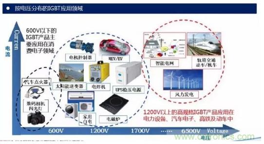 作為新型功率半導(dǎo)體器件的主流器件,IGBT已廣泛應(yīng)用于工業(yè)、 4C(通信、計(jì)算機(jī)、消費(fèi)電子、汽車電子)、航空航天、國(guó)防軍工等傳統(tǒng)產(chǎn)業(yè)領(lǐng)域,以及軌道交通、新能源、智能電網(wǎng)、新能源汽車等戰(zhàn)略性新興產(chǎn)業(yè)領(lǐng)域。