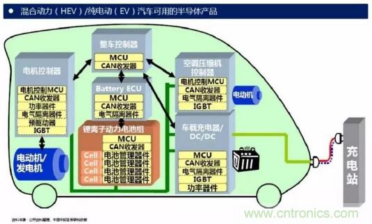 IGBT模塊在電動(dòng)汽車中發(fā)揮著至關(guān)重要的作用,是電動(dòng)汽車及充電樁等設(shè)備的核心技術(shù)部件。IGBT模塊占電動(dòng)汽車成本將近10%,占充電樁成本約20%。IGBT主要應(yīng)用于電動(dòng)汽車領(lǐng)域中以下幾個(gè)方面:
