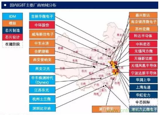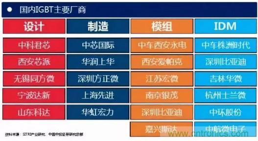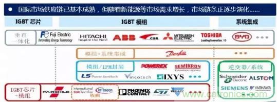 從公司來(lái)看,國(guó)外研發(fā)IGBT器件的公司主要有英飛凌、 ABB、三菱、西門康、東芝、富士等。中國(guó)功率半導(dǎo)體市場(chǎng)占世界市場(chǎng)的50%以上,但在中高端MOSFET及IGBT主流器件市場(chǎng)上,90%主要依賴進(jìn)口,基本被國(guó)外歐美、日本企業(yè)壟斷。