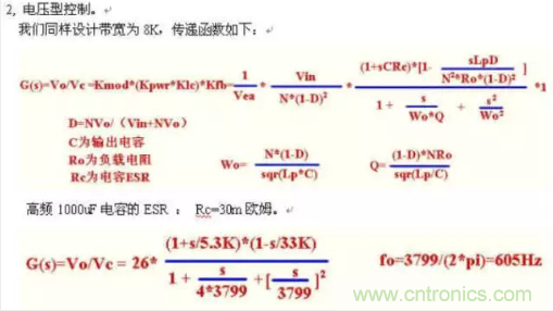 下面分電壓型和峰值電流型控制來設計此電源環路.所有設計取樣點在輸出小LC前面.如果取樣點在小LC后面,由于受LC諧振頻率限制,帶寬不能很高.1)電流型控制